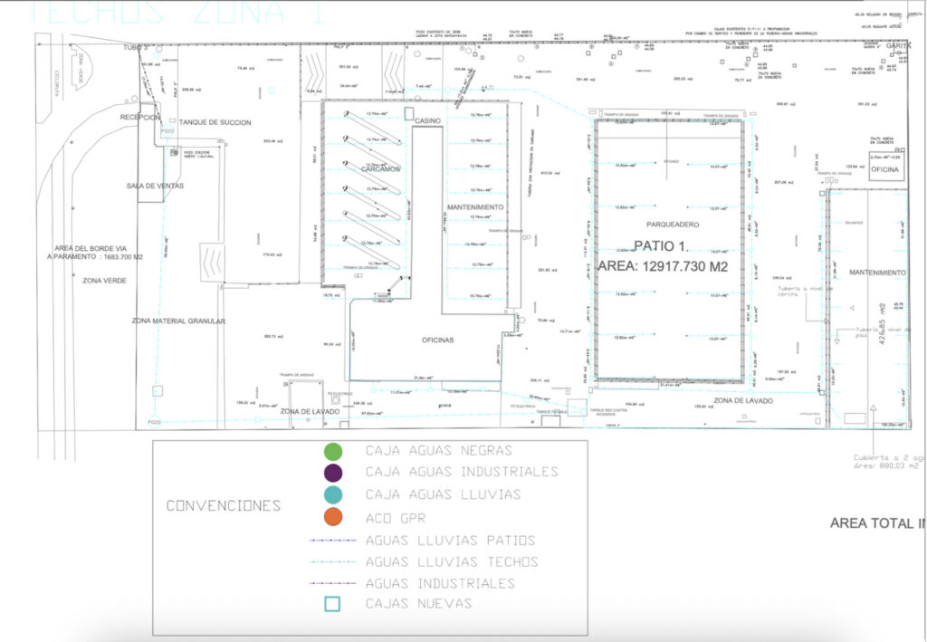 Diagnóstico inicial y levantamiento de información: se realizó un estudio detallado de la infraestructura existente, las condiciones topográficas del terreno y las áreas de generación de aguas lluvias, domésticas e industriales.